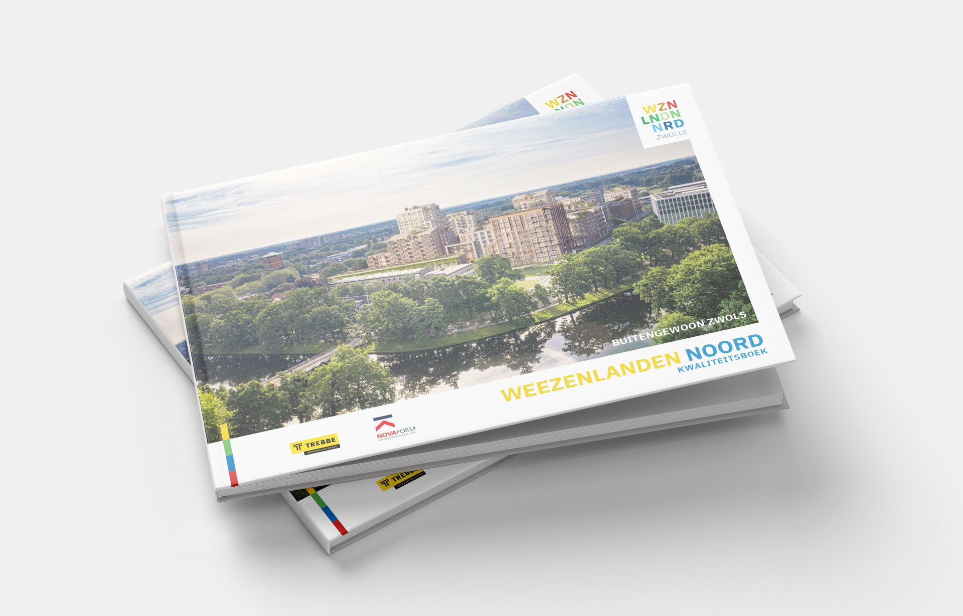 In het kader van de wijkvernieuwing van Weezenlanden Noord in Zwolle realiseerden wij een samenhangende en hoogwaardige projectstijling. Naast het ontwerp van het herkenbare logo en de bijbehorende huisstijl verzorgden wij het kwaliteitsboek waarin de ontwerpprincipes, duurzaamheidsambities en ruimtelijke kwaliteiten worden geborgd.